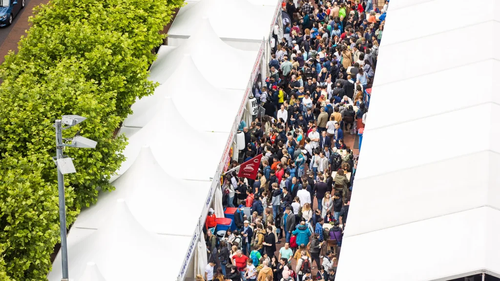 \Door strakke logistieke coördinatie en samenwerking met de eventplanner was alles ruim op tijd klaar voor het publiek. Centraal op het terrein stond een ruime Aluhal-tent met een zijhoogte van 3 meter, wat zorgde voor een ruimtelijk gevoel als overdekte eetruimte. Hieromheen plaatsten we gekoppelde pagodetenten voor individuele foodstands en culturele activiteiten. Een zwaarlastvloer zorgde voor verankering zonder schade aan de ondergrond.