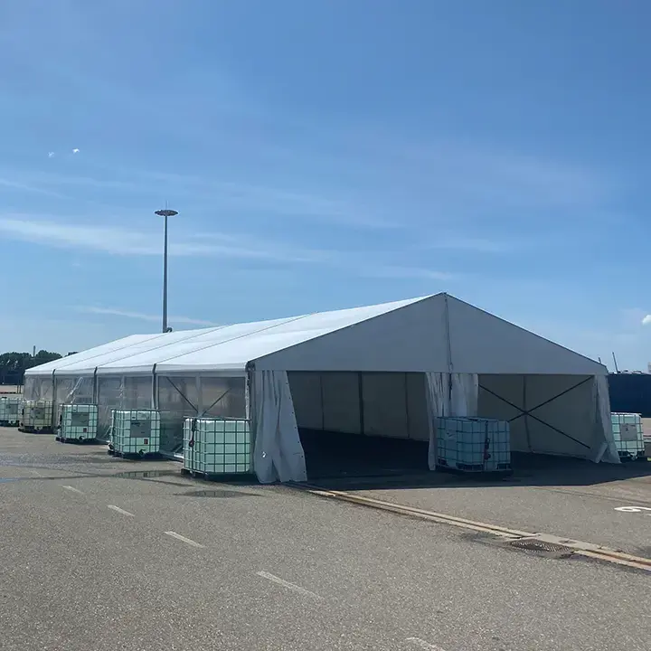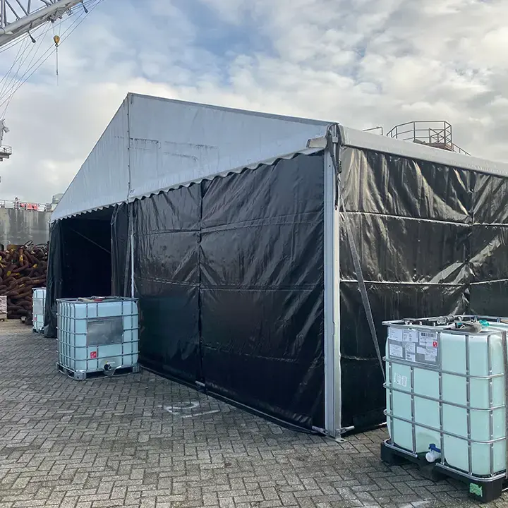 Materiaal: Stevig aluminium frame en brandvertragende PVC-zeilen, harde wanden of sandwichpanelen voor maximale veiligheid en duurzaamheid.